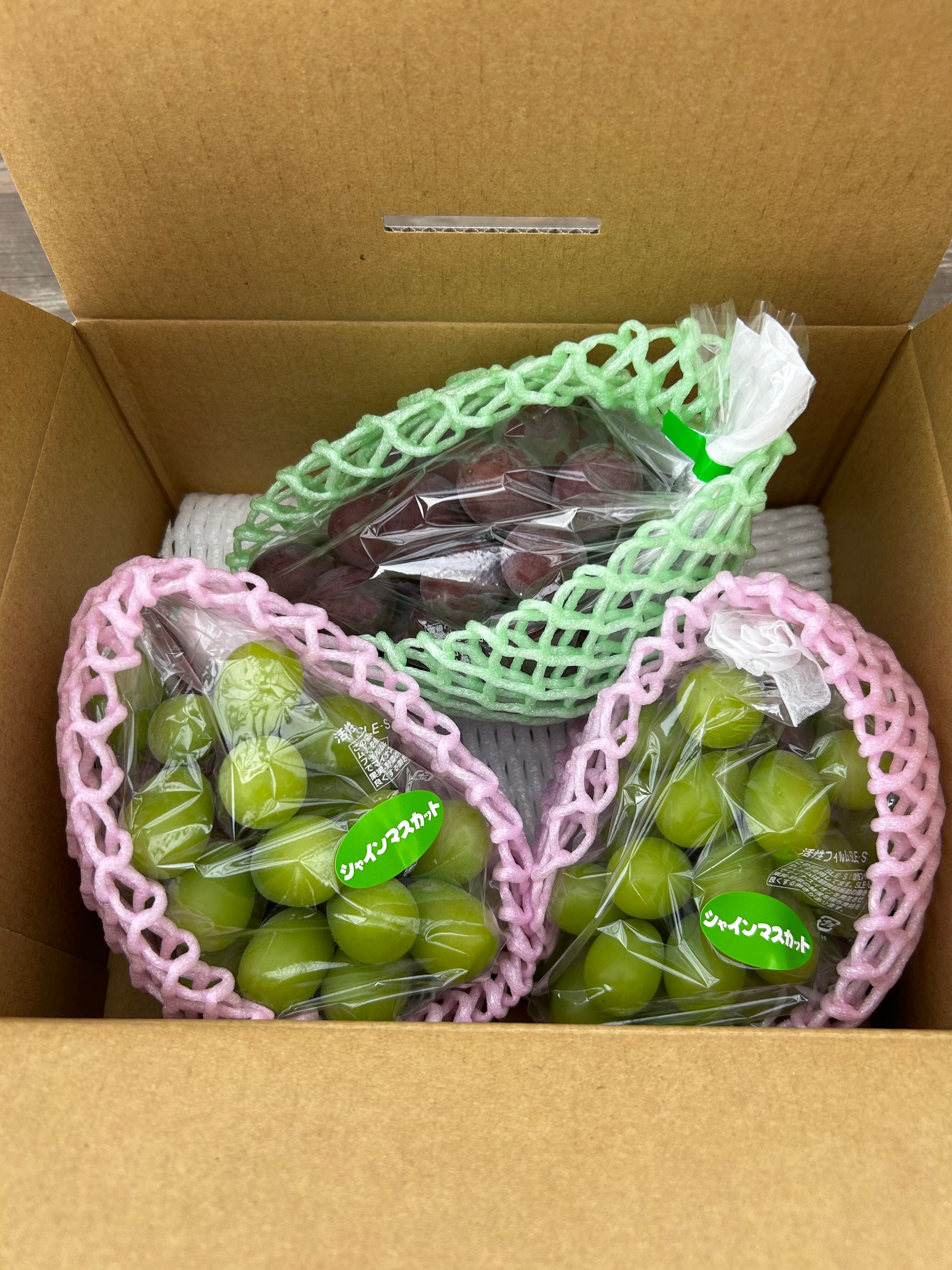 シャインマスカット2房とBKシードレスを詰め合わせました。